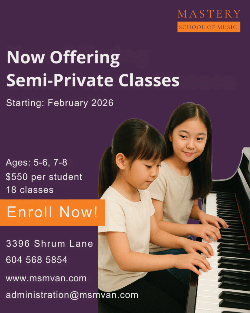 Mastery School of Music has developed a well rounded music education that encompasses private lessons, along with group classes to address sight reading, ear training, and theory. It also strives to provide many opportunities for performances throughout the year and an annual concerto competition. Performing together in chamber groups, garage bands and ensemble playing gives students chances to collaborate together in a group setting.
